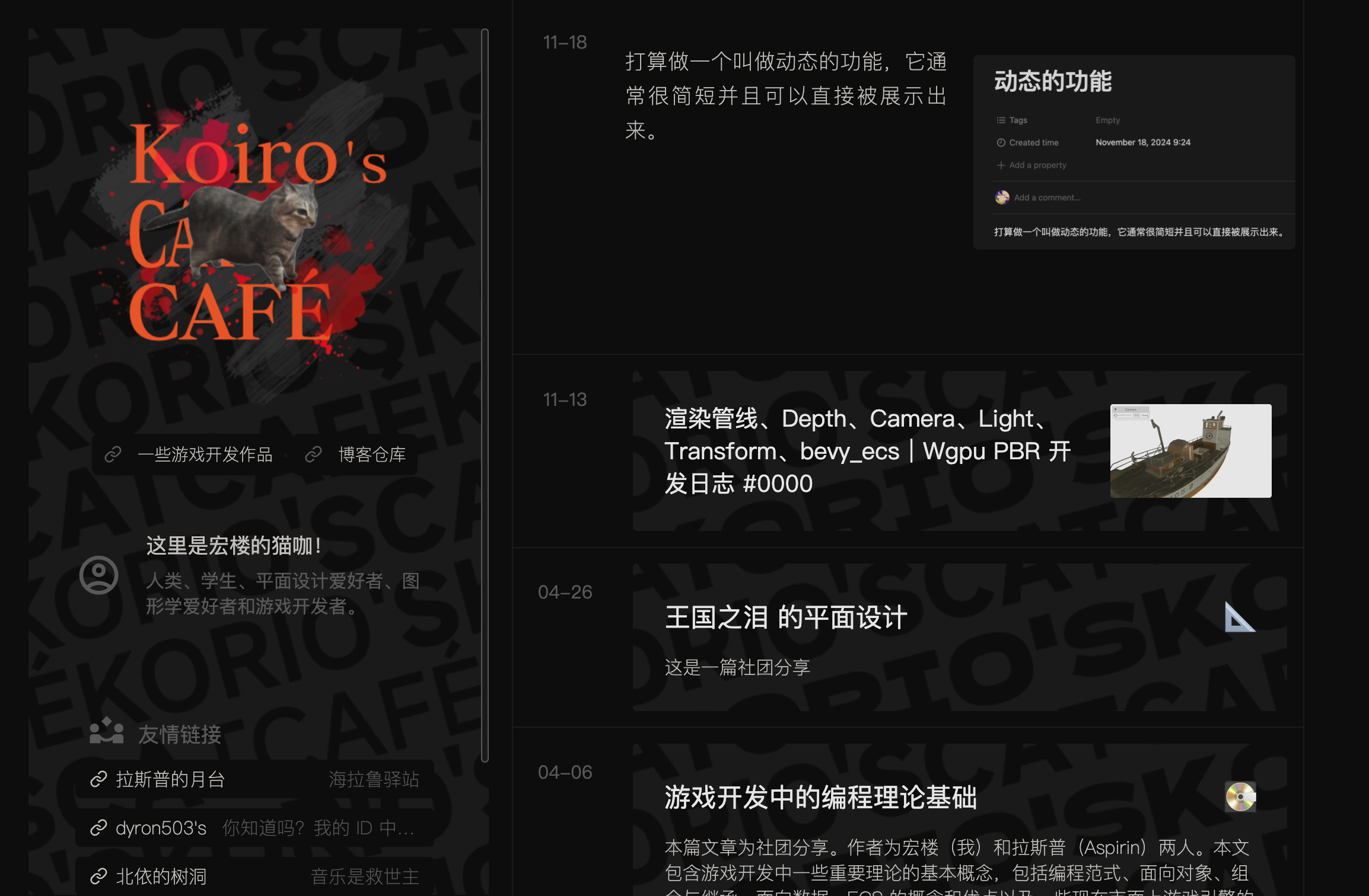 现在有了动态的功能,并且文章和开发日志也以动态的形式显示在主页中。时间的样式还有待调整。