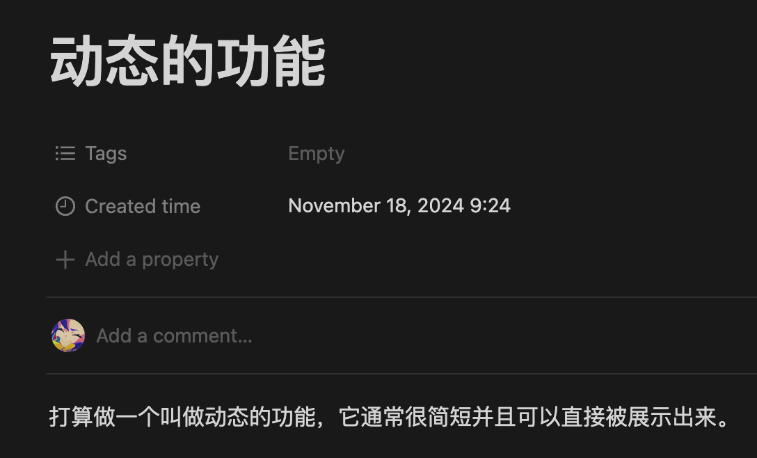 打算做一个叫做动态的功能,它通常很简短并且可以直接被展示出来。