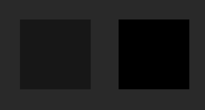 在 CMYK 格式下的黑色建议使用 K 值为满,其它值为 0 的颜色。这样了印刷黑色时只使用黑色墨水,可以防止不同墨混合产生的溢色现象,也可以节约墨水。设计软件在将 RGB 转 CMYK 时通常会把黑色转为 CMY 的混合而不是满的 K 值,这点需要注意。