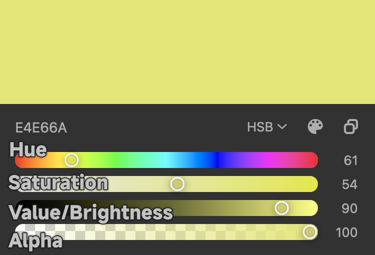 需要注意的是本质上是一种以很直接的数学映射方式,将 RGB 空间以数学关系映射到 HSV,并且看起来舒适。它并不是完美的适合人类的色彩模型,我们在后面也可以看到它存在的一些问题。