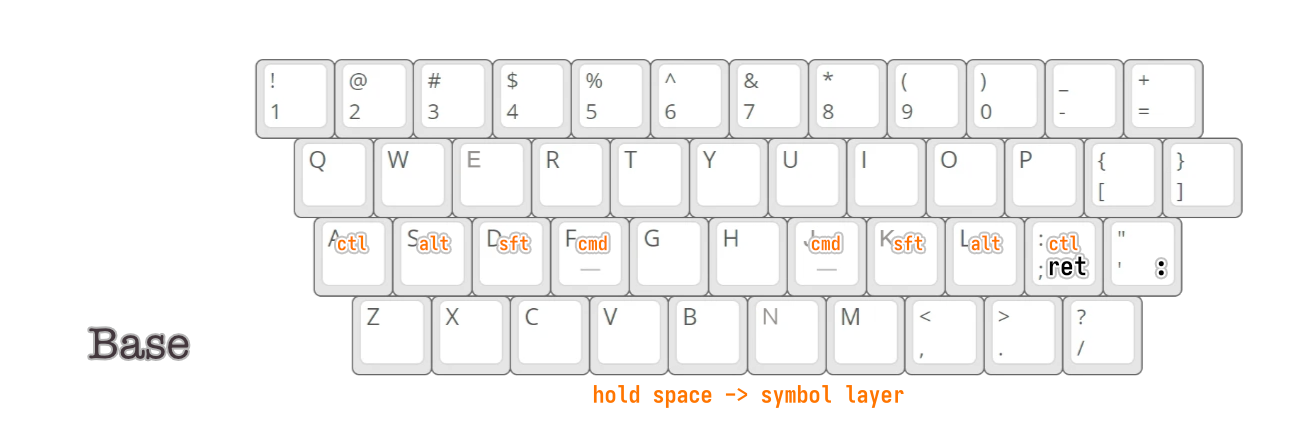 其它位置中, ; “ 被 Base 层占据,所以放到了符号层。同时 “ 在我常用的编程语言中的使用频率更高,所以把它放在了更好按的位置, ‘ 被放到了其下面。