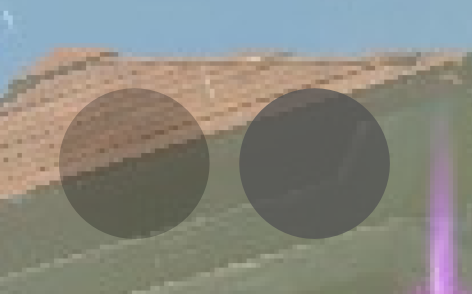 另一方面,即使在很白的画面颜色下,因为 HUD 有潜阴影的关系,玩家也能看清其内容 另一部分的 HUD 则采用半透明黑底 + 亮色的方式,这是比较常见的设计方式。(右边的多出的黑圆是我用设计软件尝试验证叠加模式的结果,确认是正常的叠加模式)